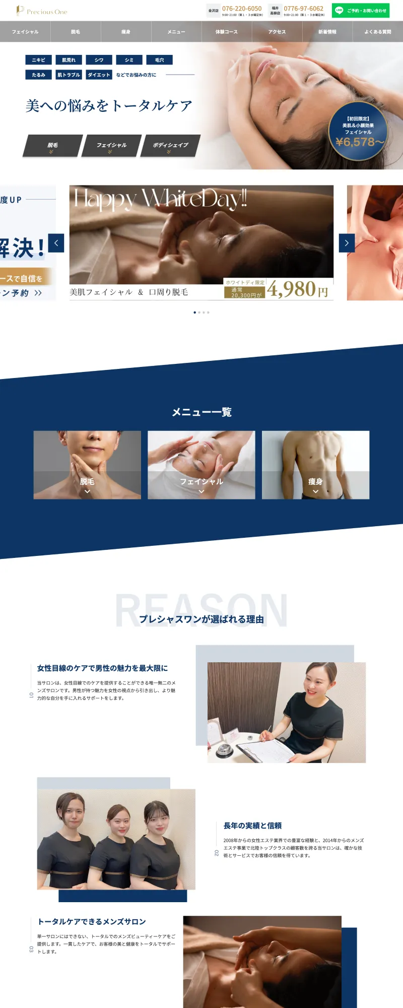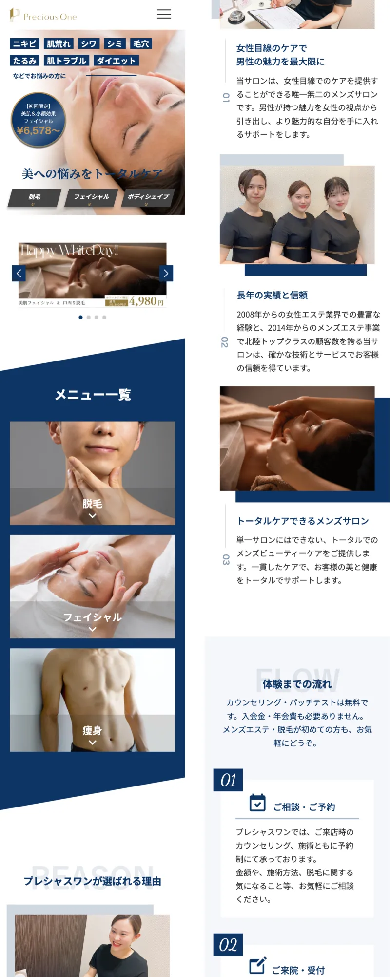 プレシャスワン|男性向けフェイシャル・脱毛・痩身サロンの店舗サイト制作
